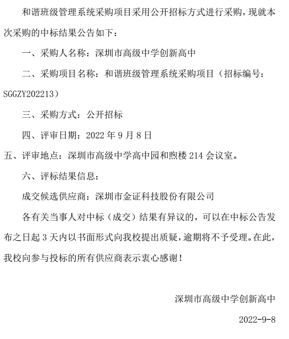 深圳市高级中学创新高中图书馆家具采购项目(重新招标)中标公示