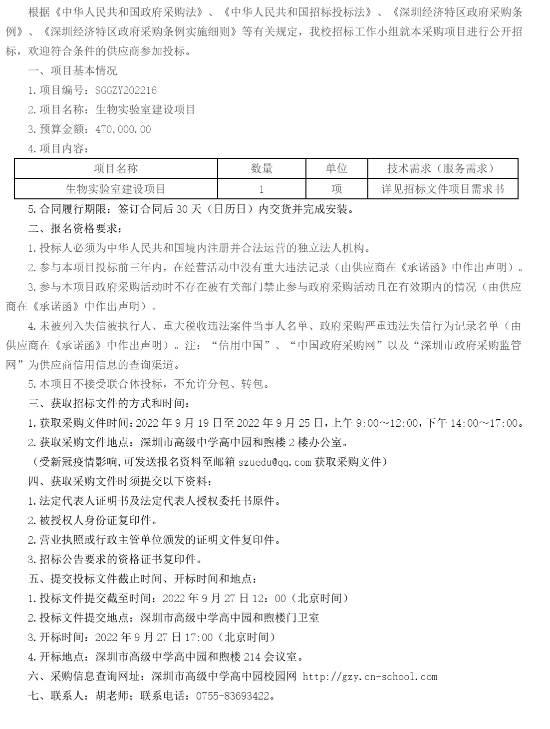 生物实验室建设项目招标公告