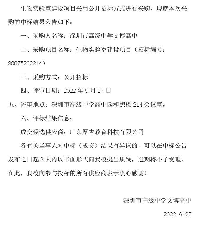 生物实验室建设项目中标公示