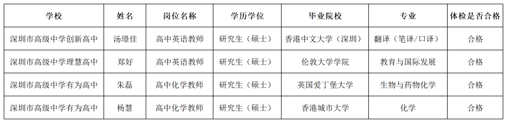 一、2023年深圳市高级中学高中园面向2023年应届毕业生公开招聘教师第二批体检合格名单