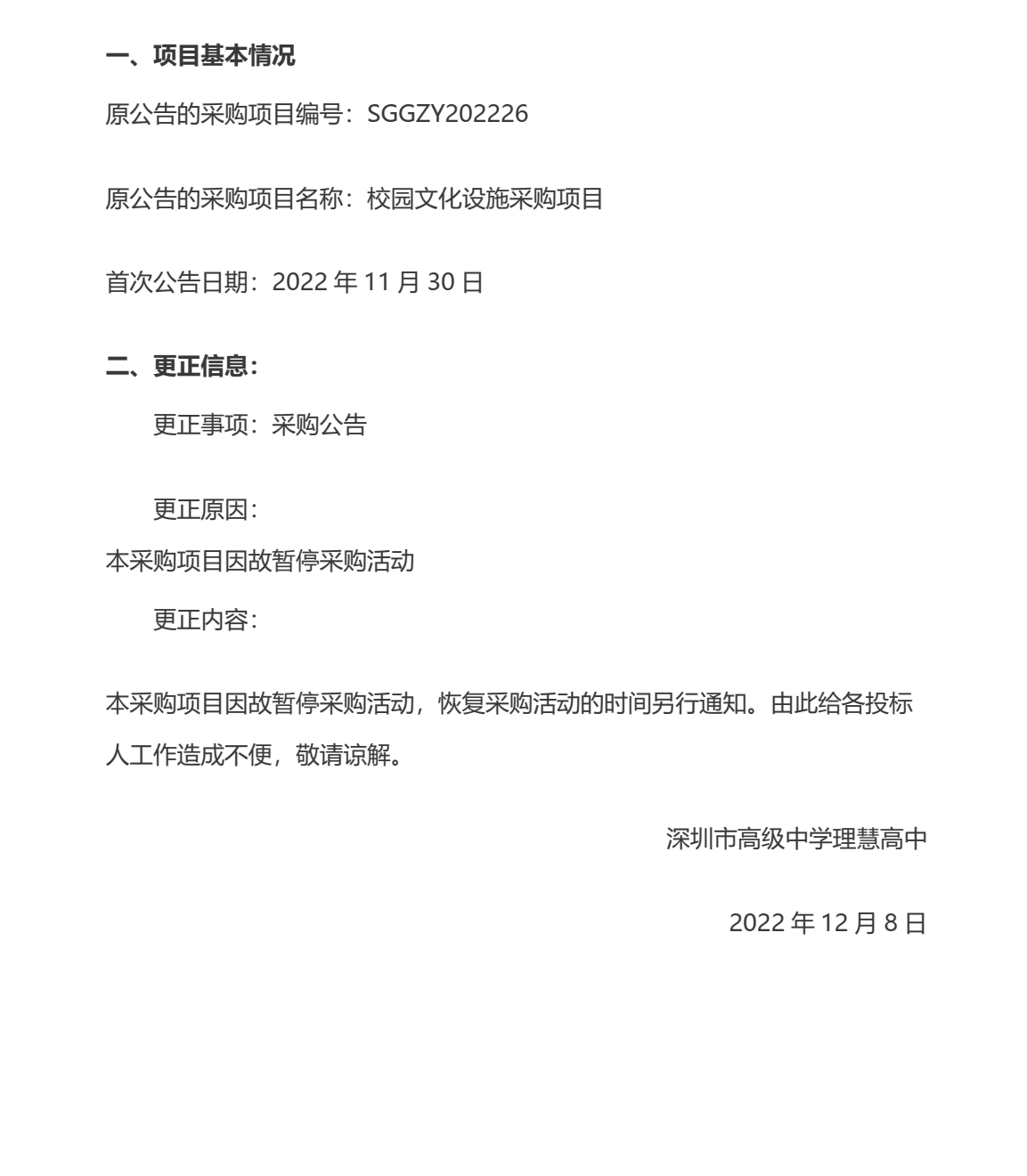 校园文化设施采购项目采购暂停公告