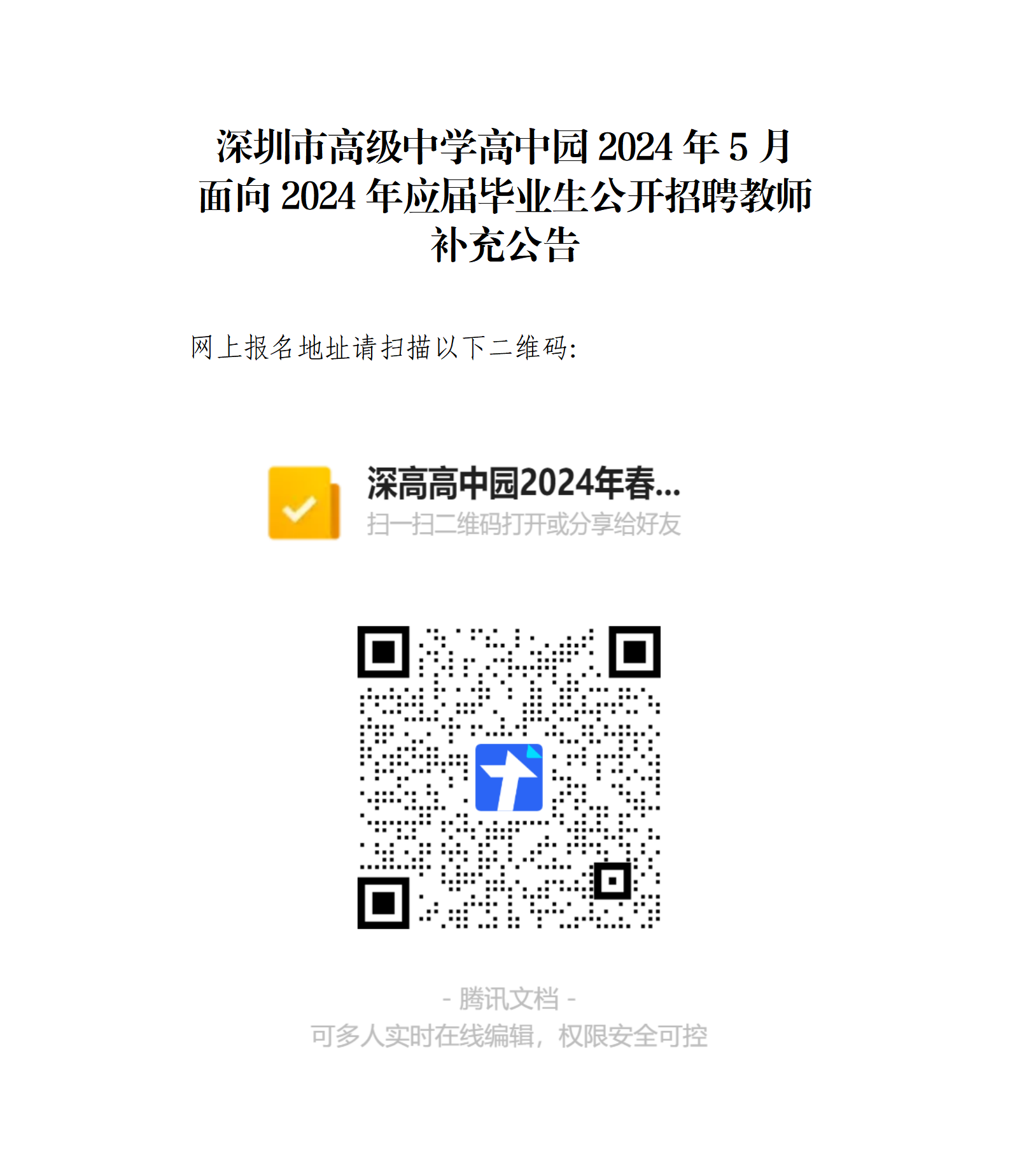 深圳市高级中学高中园2024年5月面向2024年应届毕业生公开招聘教师补充公告