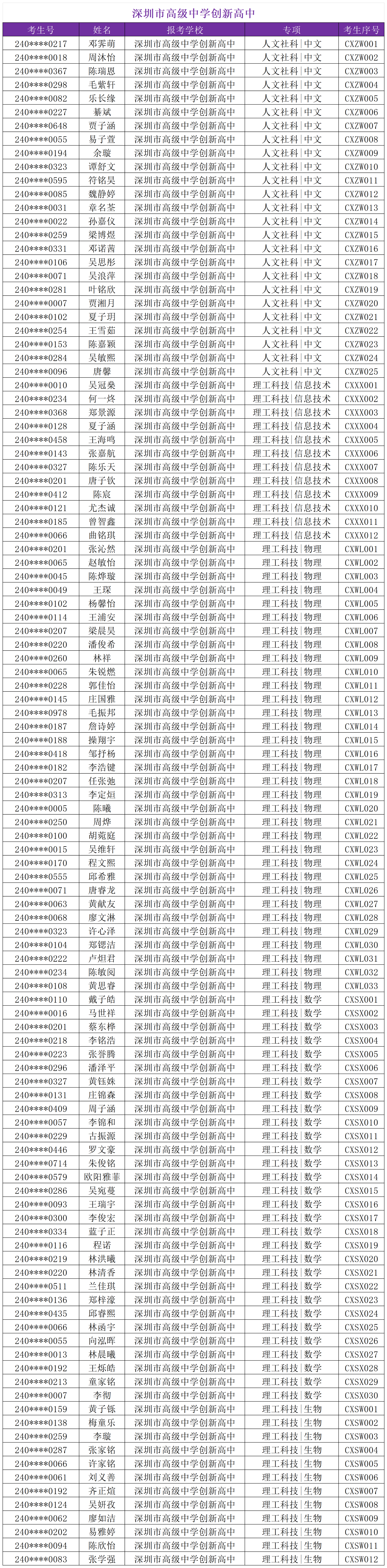 2024年深圳市高级中学高中园一类自主招生考核名单公示